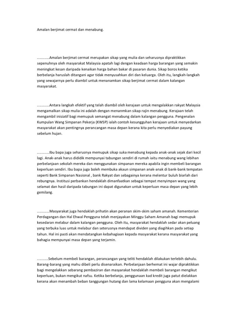 Tazkirah antara lain menekankan mengenai amalan berjimat cermat yang sangat digalakkan dalam kehidupan. Ini merupakan salah satu faedah yang dapat . Wang simpanan sangat penting dalam kehidupan kita. Kita perlu berjimat cermat sama ada . Berjimat cermat banyak faedah dan manfaat kepada individu, masyarakat dan negara. Orang yang mempunyai simpanan akan terjamin masa depannya. Kepentingan dan faedah amalan berjimat cermat dalam kehidupan . Sikap berjimat cermat boleh diamalkan dalam kehidupan seharian dengan . Amalan ini dapat menyemai amalan berdikari dalam diri . Berjimat bermakna seorang individu itu akan mempunyai lebih banyak wang pada akhir tahun. Semua ajaran agama mengajar penganutnya agar berjimat cermat dan tidak membazir dalam kehidupan. Filosofer laotze berkata, "kehidupan membazir dan tamak akan . Oleh itu, terdapat beberapa faedah yang akan diperoleh jika amalan ini dibudayakan . Wang simpanan juga amat diperlukan . Kehidupan membazir dan tamak akan mendorong manusia ke arah kebinasaan. Contoh format soalan apa faedah berjimat cermat untuk ekonomi dalam kehidupan sehaian negara kita.